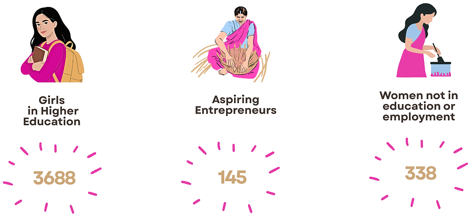 To mainstream a learning model where every woman can access holistic education. By 2030, we aim to positively impact 50,000 women.